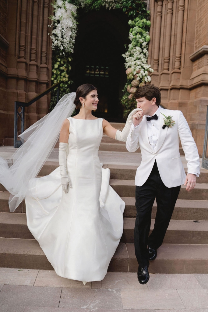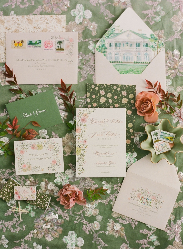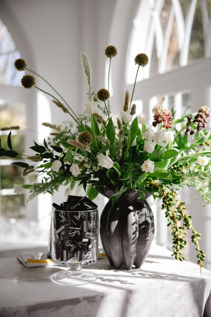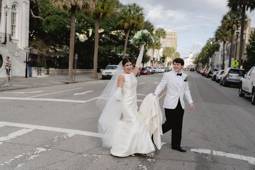 “We can really mix things up with colors, patterns, and textures to fit each client’s personality,” says Caroline Rayman, who runs The Social Spool Co. alongside event planning veterans Leigh Warren, Amanda Neiring, and Jordan Lessley. Consider two of their recent weddings, both held under the clear-top tent at Lowndes Grove but with dramatically different looks. “One is crisp and tailored, and the other is more swaggy and whimsical,” she adds.