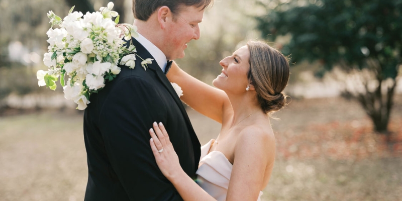 When it came to wedding planning and décor, Crystal wanted romance, lace, and pearls. She decided on a venue—the Ocean Course at Kiawah Island—and a palette of blush, champagne, and peach. Then she entrusted Tara Guérard Soirée to take care of the big picture while she got crafty with the personal details, like vintage music sheets (for the ceremony programs), old frames (for family photos), and lace doilies (for table runners). As guests arrived at Kiawah on the Big Day, they were greeted with champagne and chocolate chip cookies, and after the “I dos,” everyone took their seats for a dinner at sunset. Says Crystal, “The entire day was a dream come true.”