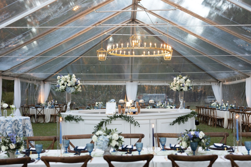 • Let a pro handle the rentals. Marrying at a private residence meant everything from barware to bathrooms had to be procured—a daunting task for a couple living states away. To reduce stress, Dantzler asked event designer Emily Gregg to do her thing and only loop in the couple as needed.