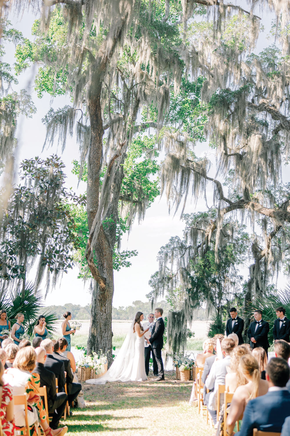 A Match Made in Heaven Classic white blooms, greenery, and wooden elements set off this stunning Charleston wedding under the oaks When it comes to love and marriage, couples who pair well...